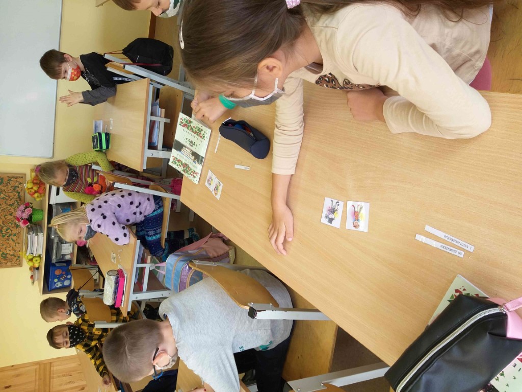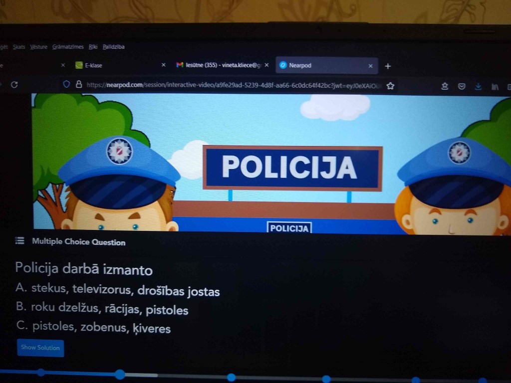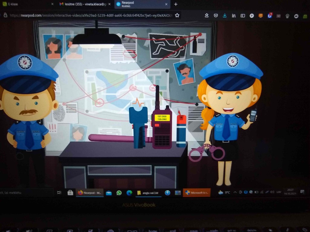 << Skolotāja V. Klieče ar sākumskolas skolēniem angļu valodā mācījās atpazīsti profesijas skatoties multfilmu par dažādām profesijām, mācījās tās nosaukt. Arī latviešu valodas ietvaros kopā ar skolēniem ieskatījās profesiju pasaulē – šoreiz izvēloties profesiju POLICISTS. Skatās multfilmu un izvēlas pareizo atbildi uz jautājumiem par redzēto, pārrunā profesijas aktualitāti, IT izmantošanu šajā profesijā(skatīt bildes)