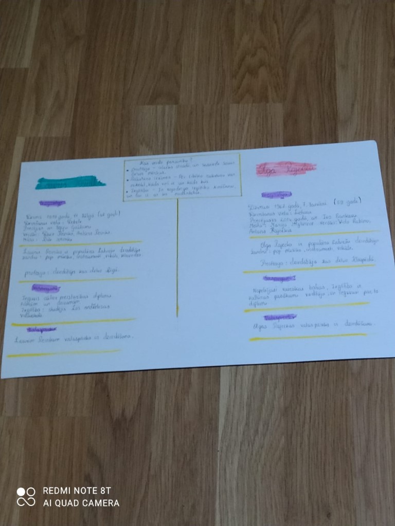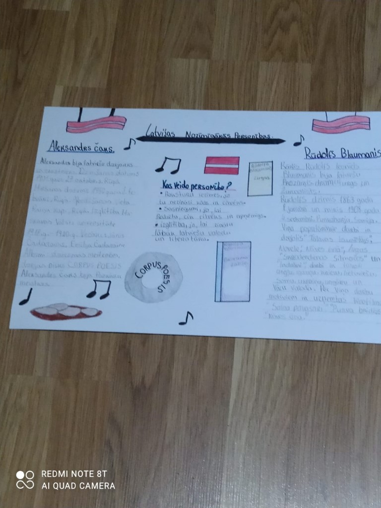 << Latviešu valodas skolotāja I. Runģevica izvēlējās tēmu” Kas veido cilvēka personību?” un kopā ar skolēniem strādāja grupās, meklēja informāciju par nozīmīgām personībām Latvijā, secināja, kas veido cilvēka personību un izveidoja plakātus. (skatīt bildes)