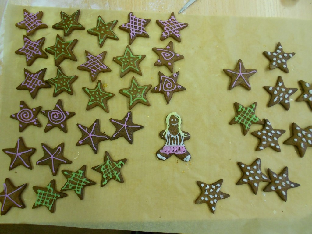 Kur dzīvo Ziemassvētku rūķi? Daudzi nezina. Mēs gan zinām! Šonedēļ tie dzīvoja Liepājas 8.vidusskolā “Rūķu mājā”. Tur sākumskolas skolotājas cepa saviem audzēkņiem piparkūkas! Un arī skaisti izrotāja! Kuri saldumi ir paši garšīgākie? Pašu gatavotie. Kuras dāvanas vismīļākās? Pašu gatavotās. Cerams, ka sākumskolas skolēniem ļoti ies pie sirds skolotāju darinātās piparkūkas. Vēl “Rūķu mājā” tapa skaistas un mīļas Ziemassvētku kartiņas pansionātam “Iļģi”. Lai netrūkst radošu ideju arī turpmāk! Jaukus svētkus!
