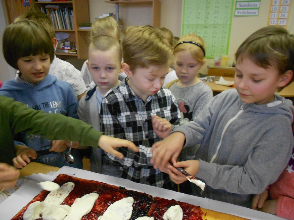 Svinības par godu Liepājas dzimšanas dienai – šogad 3.dzimšanas dienu svin sākumskolas skolēnu gatavotā kūka “Pašiem savs Rožu laukums”. Māmiņu gādīgi sarūpēto ievārījumu mazās rociņas rūpīgi klāja uz mīkstā biskvīta, bet kārās actiņas lūkojās uz gardā putukrējuma pusi. Mazie skolnieki gūst pieredzi gan kulinārijā, gan sadarbības prasmju apguvē. Un cerams, ka šis emocionālais pārdzīvojums paliks atmiņā visu mūžu! Daudz laimes, Liepāja!