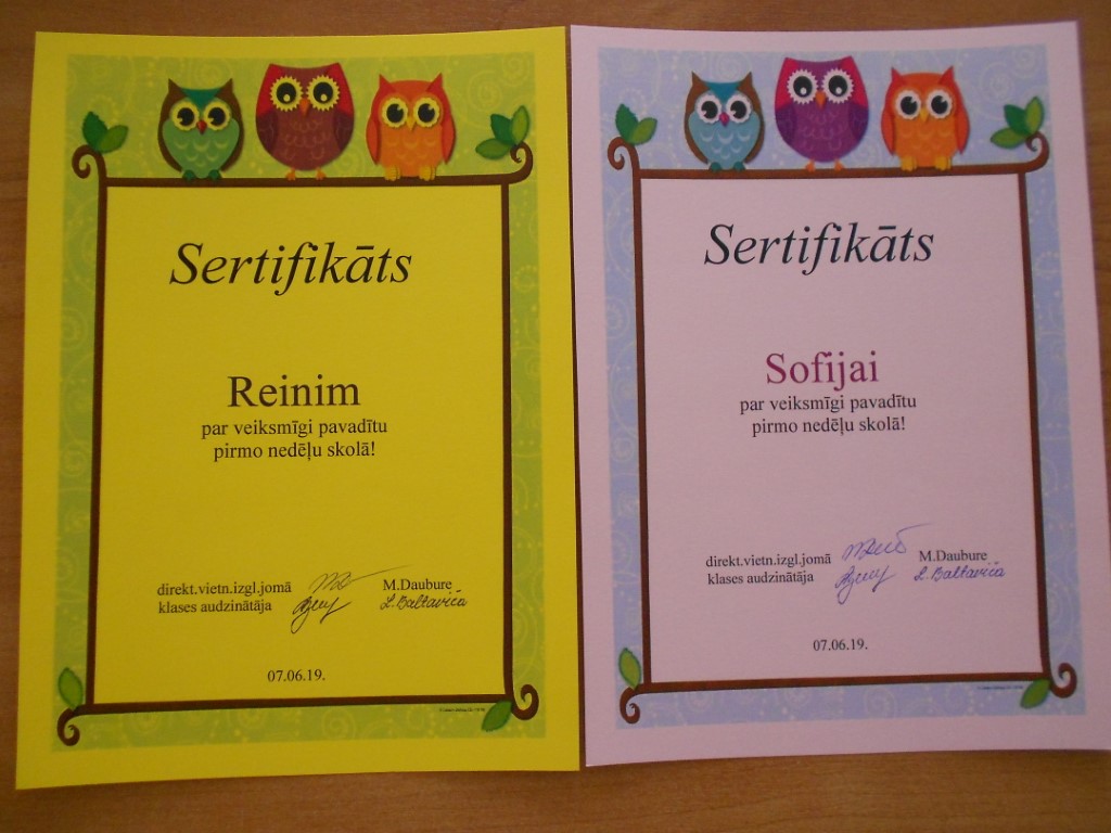 Mācības beiguši paši mazākie skolēni – topošiem pirmklasniekiem beigusies adaptācijas nedēļa skolā. Visu nedēļu viņi cītīgi rēķinājuši, lasījuši, rakstījuši, dziedājuši, sportojuši, draudzējušies – gatavojušies skolai. Arī nosvinējuši vienai skolniecei dzimšanas dienu! Daudz laimes! Par drošību uz ielas, mājās un internetā mazajiem skolēniem pastāstīja policijas pārstāvis, bet par bērnu sagatavošanu skolai vecākiem pastāstīja logopēde Gundega Tomele.