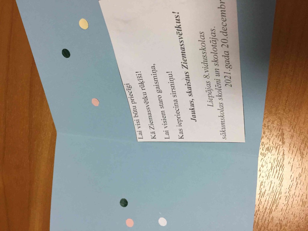 Skan tepat pie durvīm – arvien skaļāk un skaļāk. Ziemassvētki tuvojas lieliem soļiem. Un sākumskolas skolēni jau sesto gadu naski ķeras pie darba, veidojot jaukas apsveikumu kartiņas, kuras aizceļos pie pansionāta “Iļģi” iedzīvotājiem, Pašas labākās dāvanas nāk no sirds, no bērna sirds – dāvanas, kuras saņēmēji atcerēsies visu gadu. Un dāvinātājiem arī būs neviltots prieks par labi padarītu darbiņu. Paldies sākumskolas skolēniem, vecākiem, skolotājām! Priecīgus visiem svētkus!