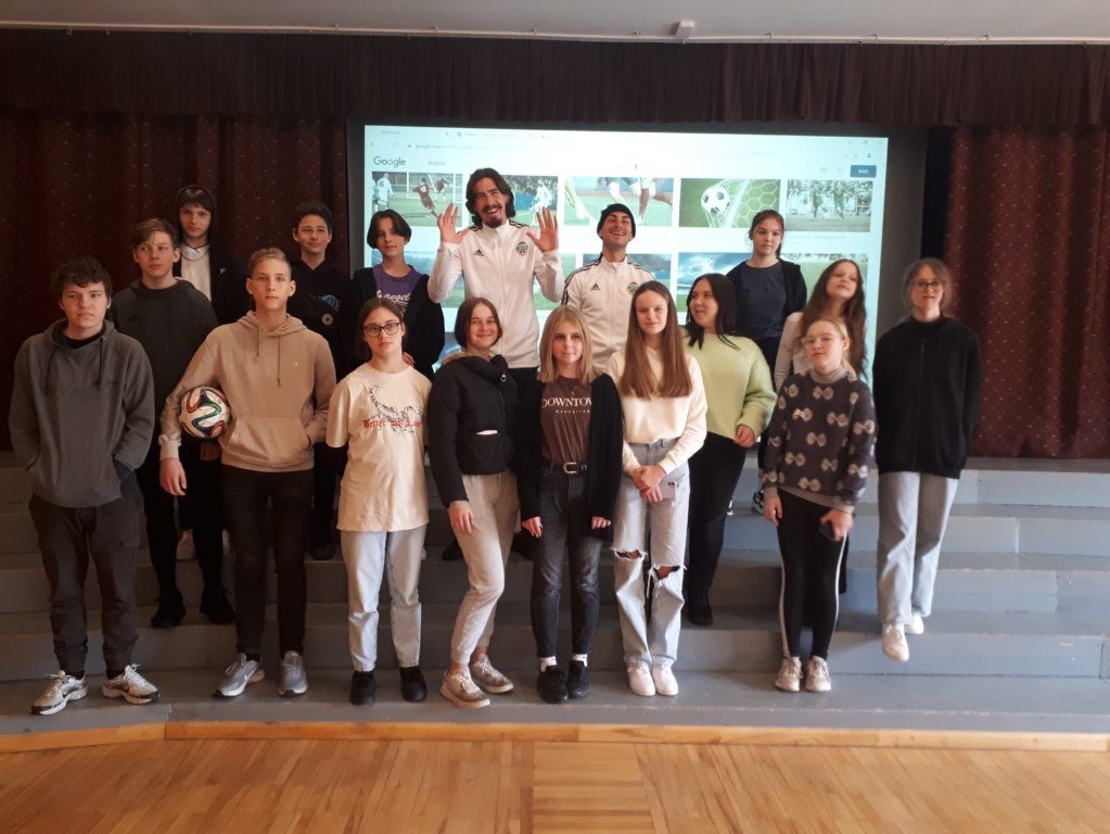 Skolēni pie sevis bija uzaicinājuši personības, no kuram varētu iedvesmoties savai izaugsmei- Liepājas futbolistus-Daniilu Hvoiņicki un Krišjāni Zviedri.