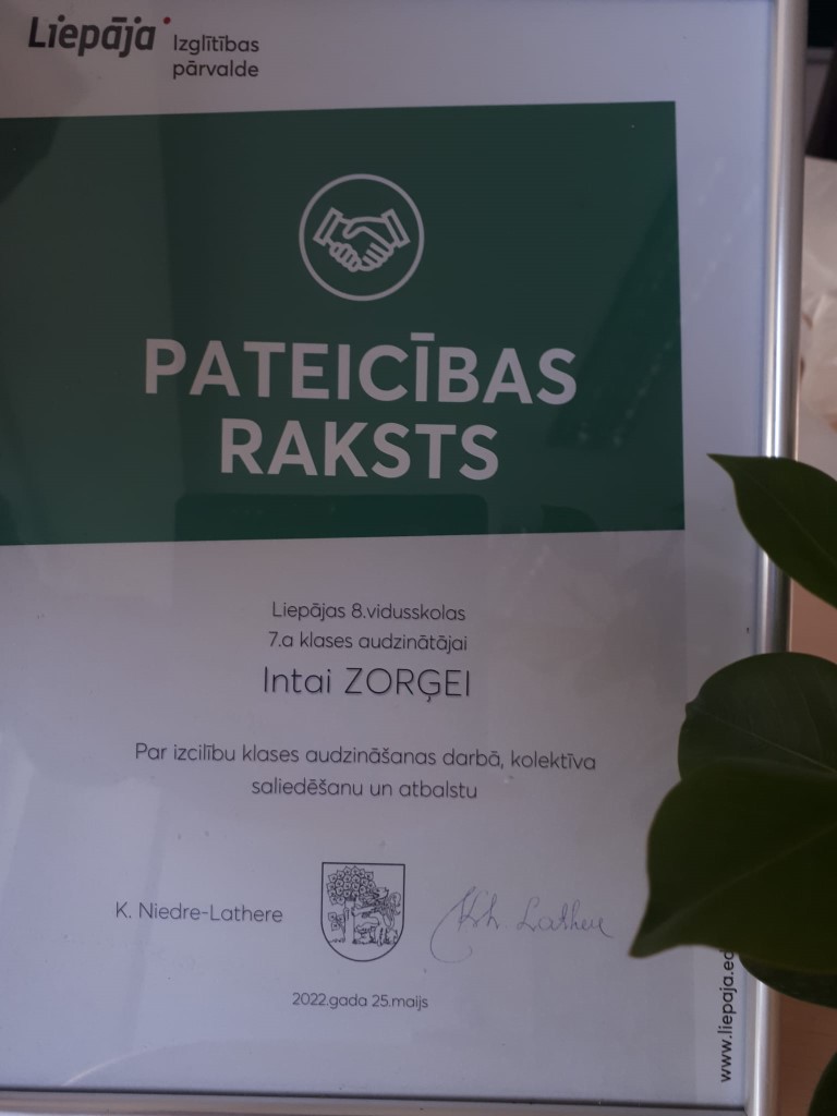 Šajā konkursā klase saņēma apbalvojumu kā Aktīvākā klase.