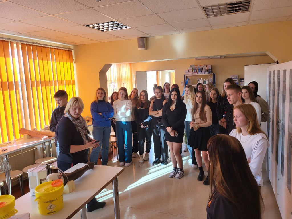 17.10. Karjeras nedēļas ietvaros skolēniem bija iespēja apmeklēt Rīgas Stradiņa universitātes Liepājas filiāli, lai iepazītu sev saistošo studiju programmu – iepazīties ar mācībspēkiem, studiju programmās studējošiem, praktizējošiem mediķiem un pašiem izmēģināt savas prasmes medicīnā.