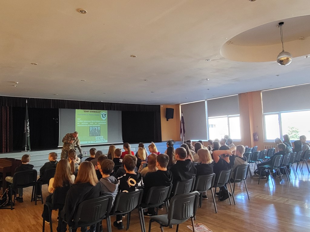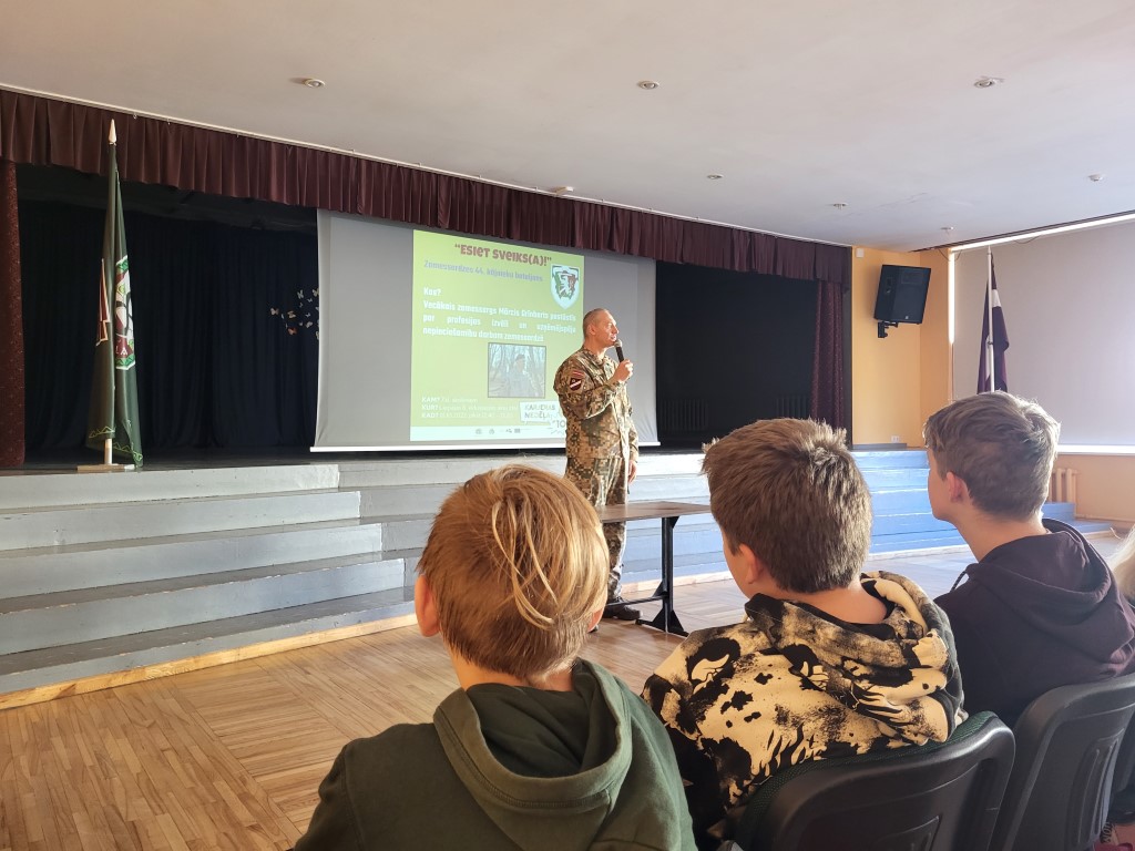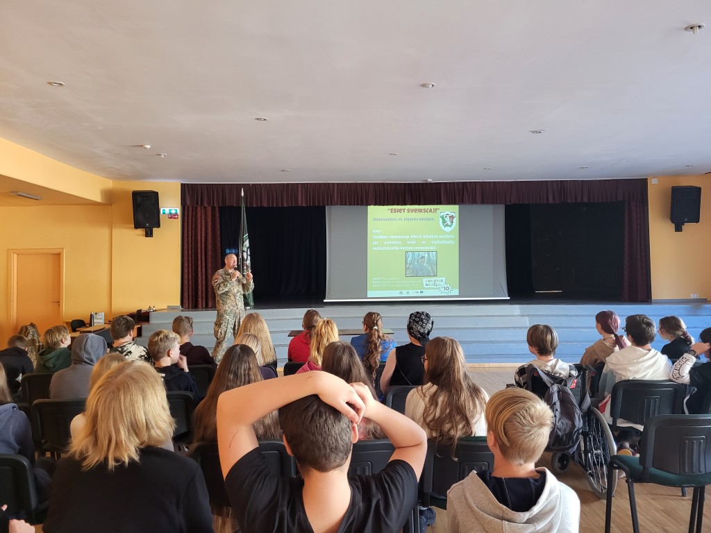 7. kl. skolēni pasākumā “Esi Sveiks (-a)” tikās ar Zemessardzes 44. kājinieku bataljona vecāko zemessargu Mārci Grīnbartu, kurš skolēniem stāstīja par savu profesijas izvēli un kā no sabiedrisko attiecību speciālista, pasākuma vadītāja, mūziķa, “Gada liepājnieka 2020” un vienkārši aktīva cilvēka vēlējās kļūt par valstij noderīgu zemessargu. Paužot savu viedokli par uzņēmējspējām, M. Grīnbarts pauda, ka tās piemīt katram un katram ir jāatrod sava niša, lai nestu pievienoto vērtību sabiedrībai. M. Grīnbarts aicināja jauniešus pievienoties jaunsardzei, lai jau tur iegūtu ikdienā nepieciešamas prasmes.