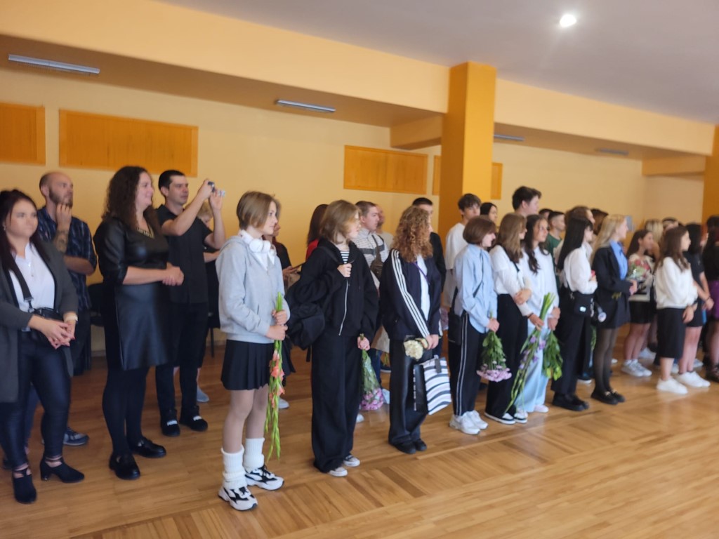 Skolēnu pašpārvaldes prezidente, 12. a klases skolniece Keita Ābele uzrunāja topošos absolventus – 9.un 12. klašu skolēnus : “Prieku, savstarpēju sapratni, piepildītus mērķus un būt visiem kopā, kas sauc savu skolu par savējo, kā vienotai komandai!”