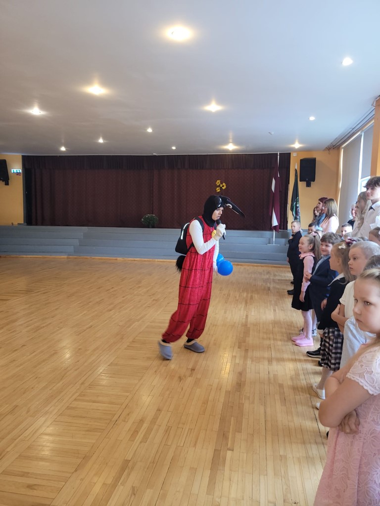 Noslēgumā mazos pirmklasniekus pārsteidza multfilmu varonis zaķēns Bings, kurš arī gribēja iet uz skolu, bet līdzi mugursomā nebija paņēmis īstās lietas. Skolēni gan izdejojās, gan izdziedājās dziesmas “Alfabēts” pavadībā.