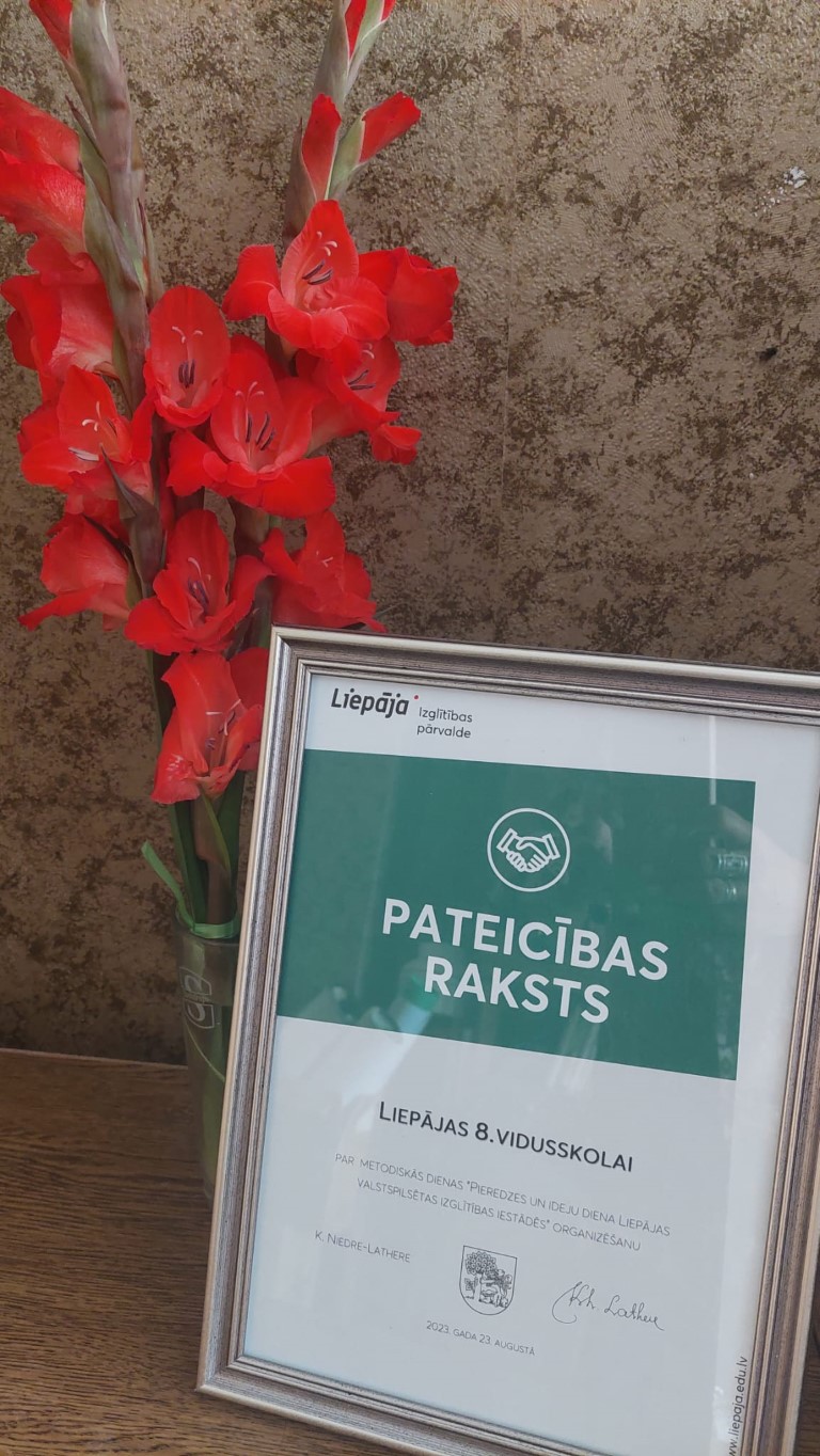 Uzsākot jauno mācību gadu, arī Liepājas 8.vidussklas skolotāji aktīvi iesaistījās Liepājas valstspilsētas metodisko dienu “IZAUGSMES STĀSTS 2020 – 2025 UZ PĀRMAIŅU SLIEKŠŅA” pasākumos. Pieredzes un ideju dienā 23.augustā mūsu skolā notika divas meistarklases par caurviju prasmēm mācību procesā – gan attīstot radošumu literatūrā, gan arī pašvadītu mācīšanos dabaszinību jomas priešmetos. Ar savu pieredzi dalījās latviešu valodas un literatūras skolotājas Kristīne Ķipste un Inga Kope -Grosa, dabaszinību skolotāja Natalija Ušakova un fizikas skolotāja Diāna Bugaja. Paldies meistarklašu vadītājām un visiem skolotājiem, kuri ar interesi piedalījās nodarbībās.